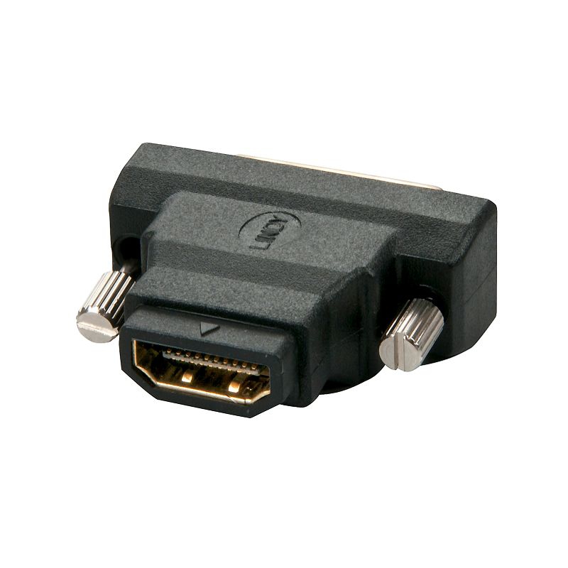 Adaptateur DVI 18+1 mâle vers HDMI femelle (19 broches), DVI avec 2 vis, forme particulièrement petite, fabricant : LINDY Allemagne
