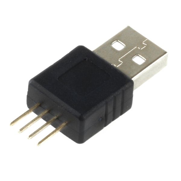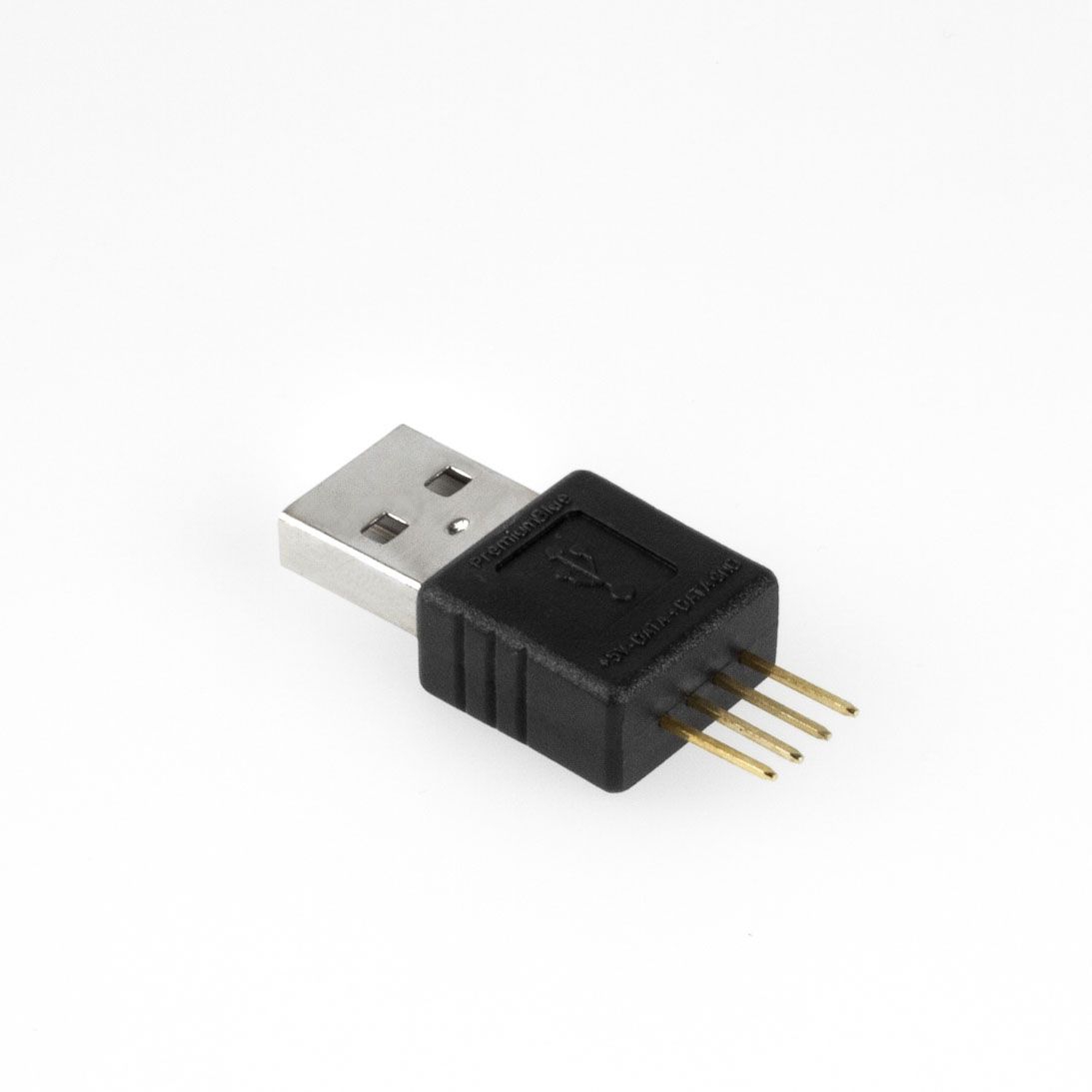 Adaptateur USB interne/externe: fiche USB A mâle vers 4 broches (points: +5 VDC, data+, data-, ground / quadrillage 2.54mm), pour connecter un câble USB interne avec une prise femelle USB A