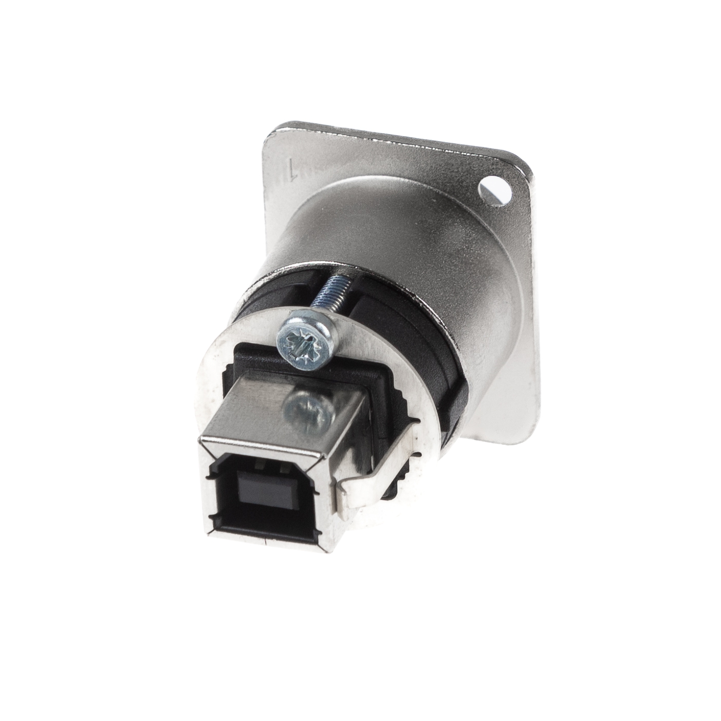 Prise USB pour montage (adaptateur informatique), à l'avant USB A femelle - arrière USB B femelle (AB pivotant), compatible USB 2.0, couleur: argent