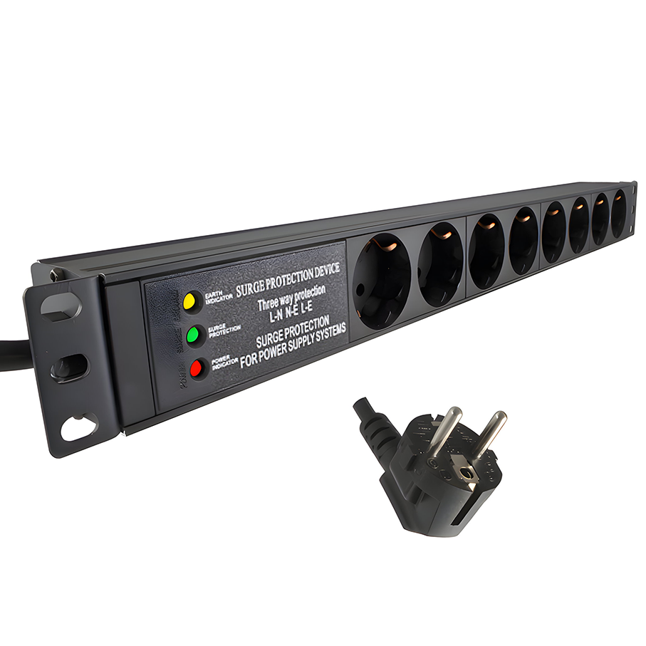- LED indicators: Power, overvoltage, earthing