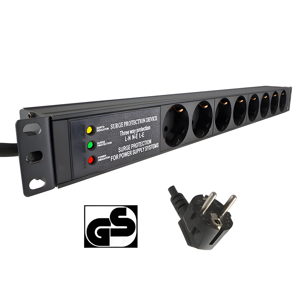 Barrette d'alimentation 19" 8x avec protection contre les surtensions