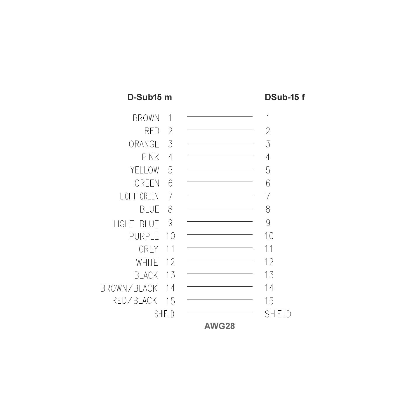 - connexion des broches: 1-1, 2-2, 3-3 .... 15-15
