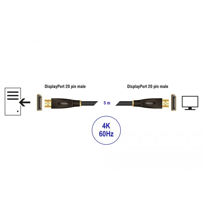Câble DisplayPort qualité PREMIUM, 5m, fiches de métal, contacts plaqués or, gaine de nylon, double blindage, max. 21,6 Gb/s, 4K ready, conforme à la norme DP 1.2
