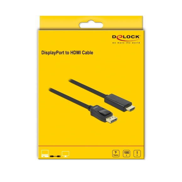 Câble DisplayPort vers HDMI, 5m, double blindage, plaqué or, DP 20pin mâle vers HDMI A mâle, noir