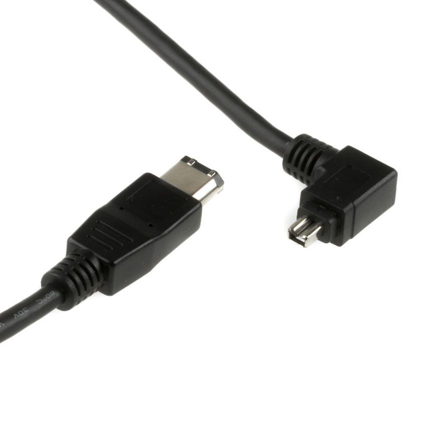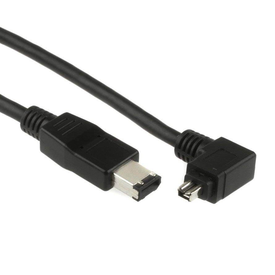 Câble FireWire 4/6 coudé, 3m, connectique: prise FireWire 4 broches mâle (coudée 90°) vers prise FireWire 6 broches mâle (pas coudée), 400 MBit/s, compatibilité: Firewire 400, IEEE-1394a, S400, i.Link, DV, couleur: noir