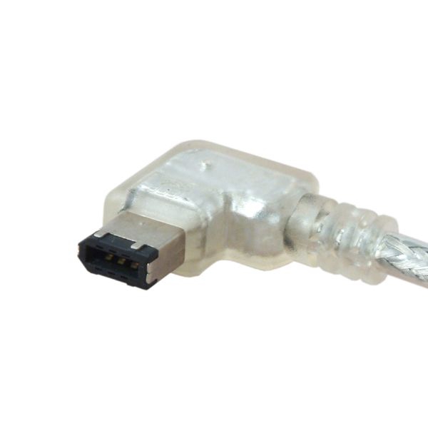 Câble FireWire avec 1 connecteur coudé 90° À GAUCHE, 2m, prise 6 broches mâle (coudée) - prise 6 broches mâle (pas coudée), 400 MBit/s (pour Firewire 400, IEEE-1394a, S400, i.Link, DV), couleur: transparent argent