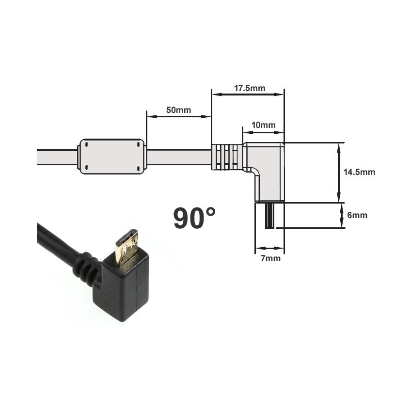 Câble MICRO USB coudé: A mâle vers Micro B 90° VERS LE HAUT