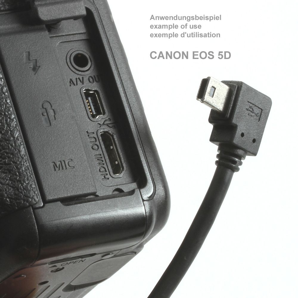 Câble USB avec connecteur MINI B coudé 90° À DROITE, 5m, connectique: prise USB A mâle (pas coudée) vers très petite prise USB MINI B à 5 broches mâle (coudée), Hi-Speed USB 2.0, couleur: noir