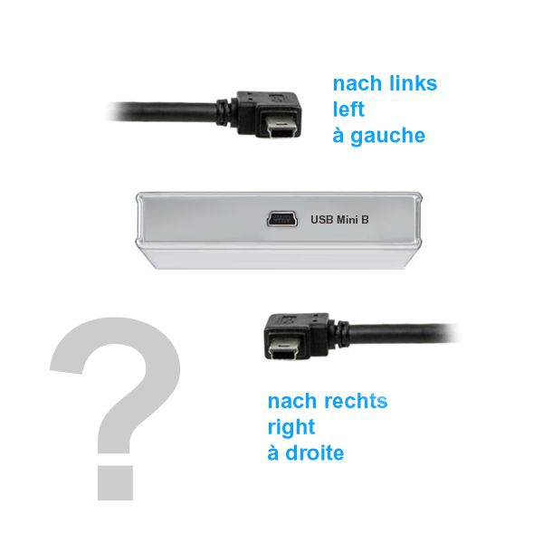 Câble MINI USB coudée: USB A vers MINI-B 90° À DROITE 5m