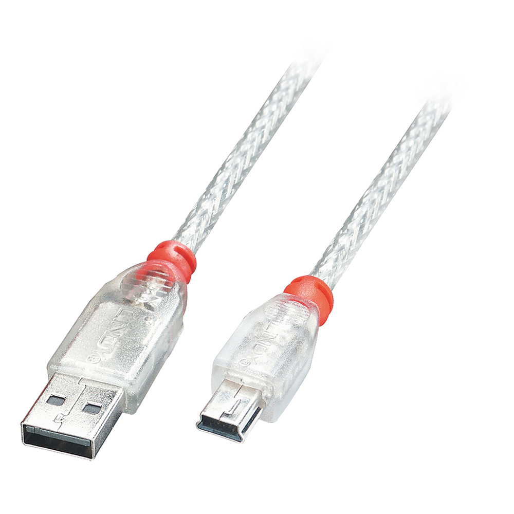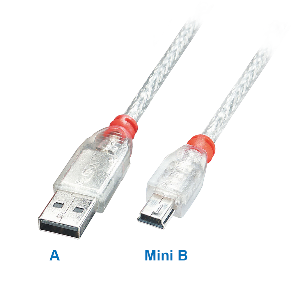 Câble USB MINI B, 1m, Hi-Speed USB 2.0, connectique: prise USB A mâle, prise USB MINI B à 5 broches mâle, couleur: argent (transparente)