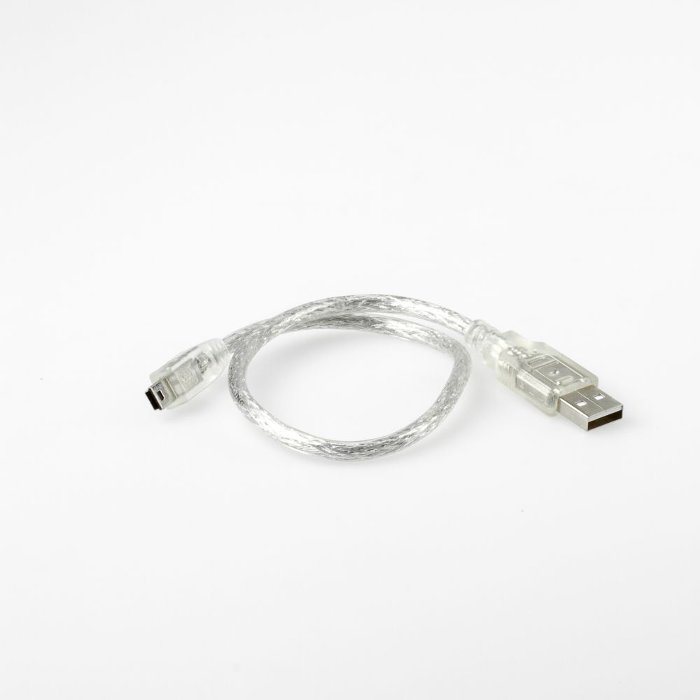 Câble USB MINI B, très court 35cm, Hi-Speed USB 2.0, connectique: prise USB A mâle, prise USB MINI B à 5 broches mâle, couleur: argent (tranparente)