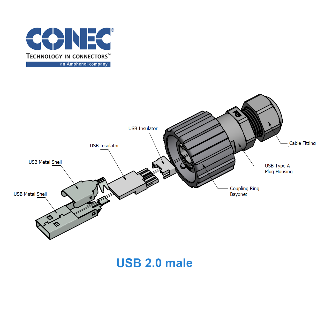 Câble PUR USB 2.0 pour l'industrie et chaînes porte-câbles, 2x CONEC A IP67, 10m