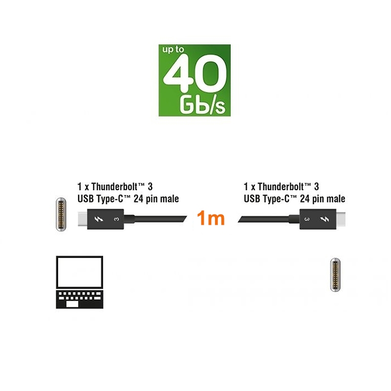 Câble Thunderbolt 3 C-vers-C, 40 Gbps, 100W, 5A, 1m