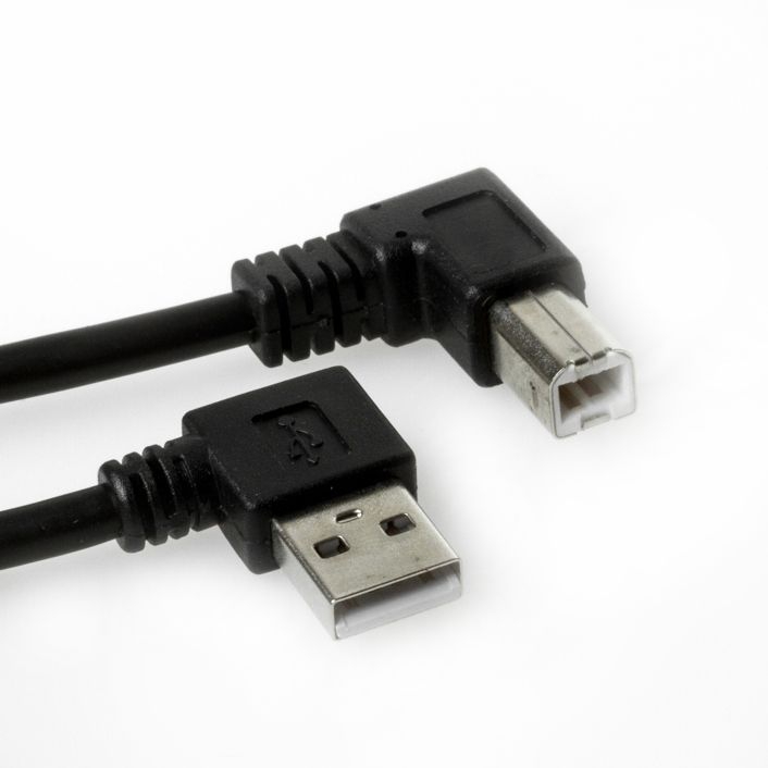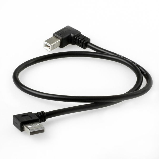 Câble USB avec tous les 2 connecteurs coudés 90°, 50cm, connectique: prise USB type A mâle (COUDÉE À DROITE) - prise USB type B mâle (COUDÉE À DROITE), Hi-Speed USB 2.0 (haute qualité 28AWG1P / 24AWG2C), couleur: noir