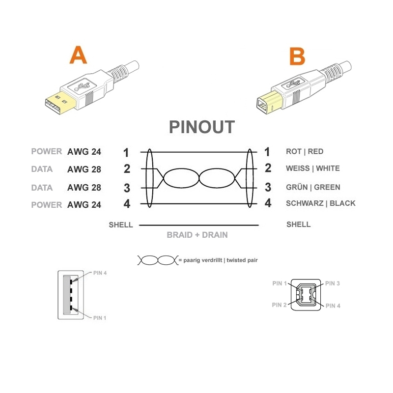 - épaisseur du fil de cuivre conforme à la norme USB : AWG28 + AWG24