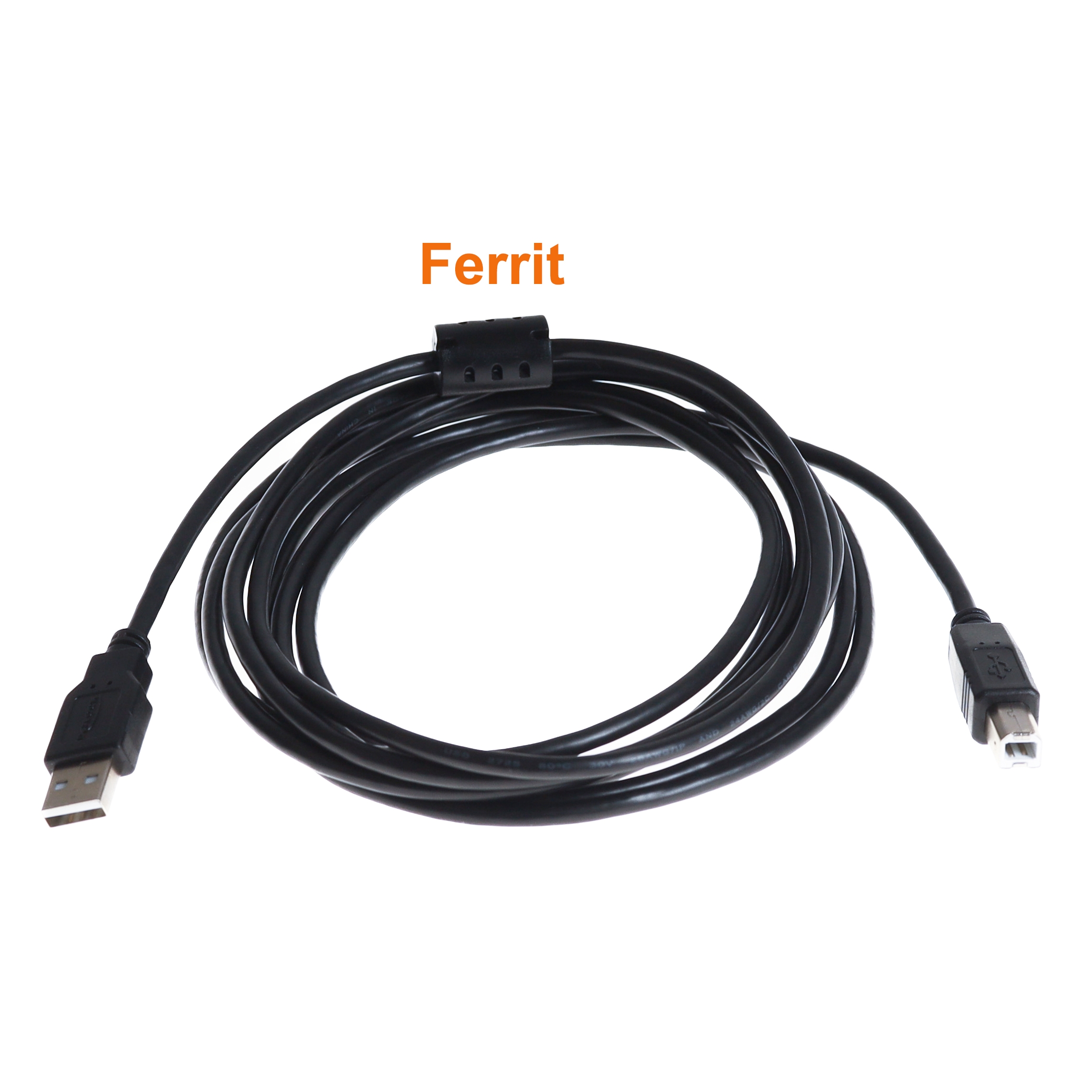 Câble USB "protection" avec 1x noyau de ferrite, 2m, USB A mâle / USB B mâle, USB 2.0 max. 480 Mbps, noyau en ferrite contre les perturbations lors de la transmission des données, noir