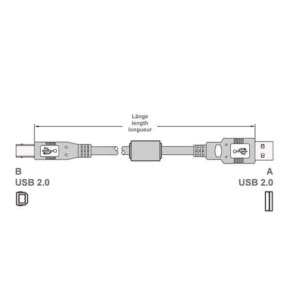 Câble USB "protection" avec noyau de ferrite, 30cm, USB A mâle / USB B mâle, USB 2.0, parasurtenseur intégré à la prise A (protection contre les perturbations lors de la transmission des données)