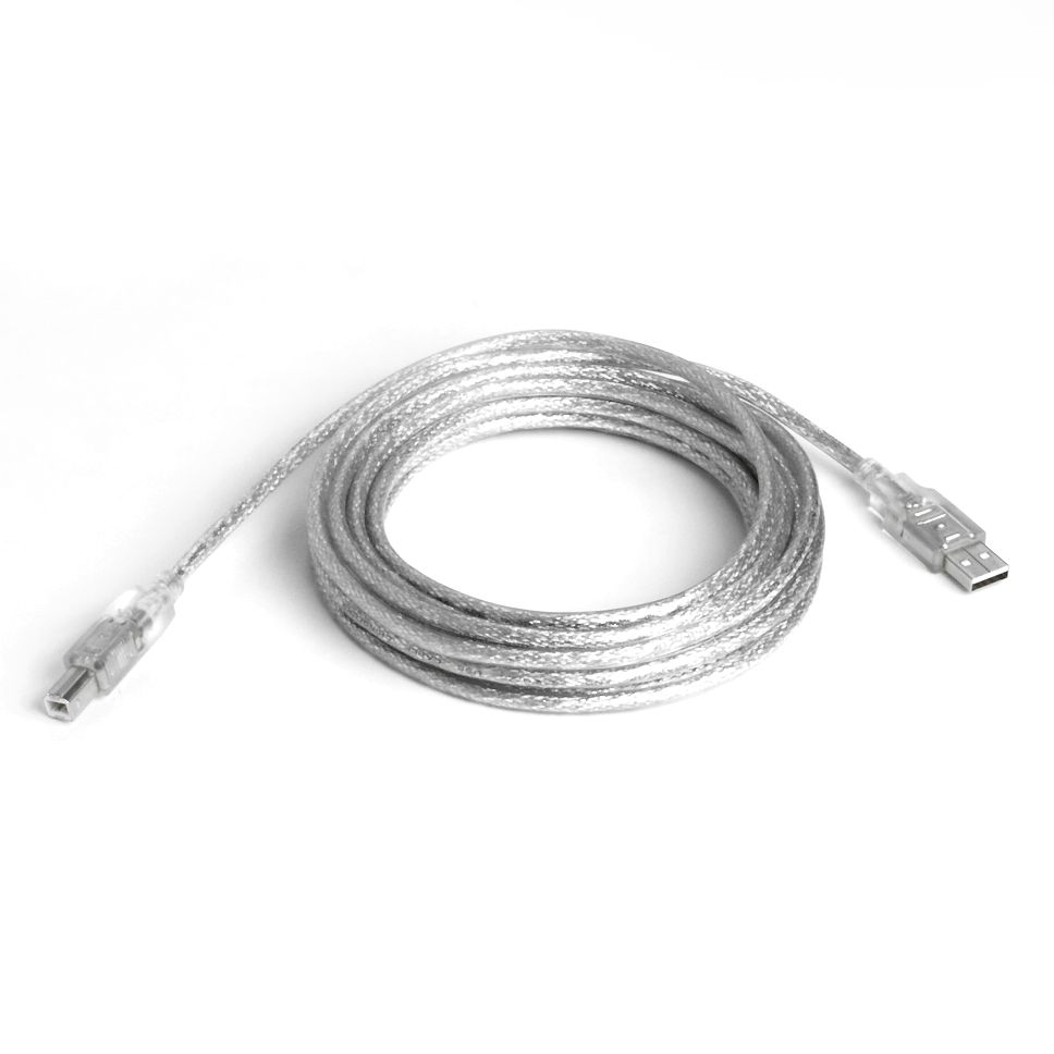 Câble USB, longueur 5 mètres, Hi-Speed USB 2.0 (cordon de haute qualité 28AWG1P / 24AWG2C), connectique: USB à 4 broches type A mâle - USB à 4 broches type B mâle, couleur: argent (transparent)