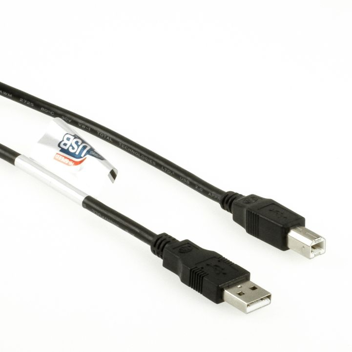 Câble USB 2.0, 3m, UL2725 + agréé USB-IF (TID no. 611000009), AWG28/1P AWG24/2C, double blindage, USB High/Full Speed (480mbps), noir