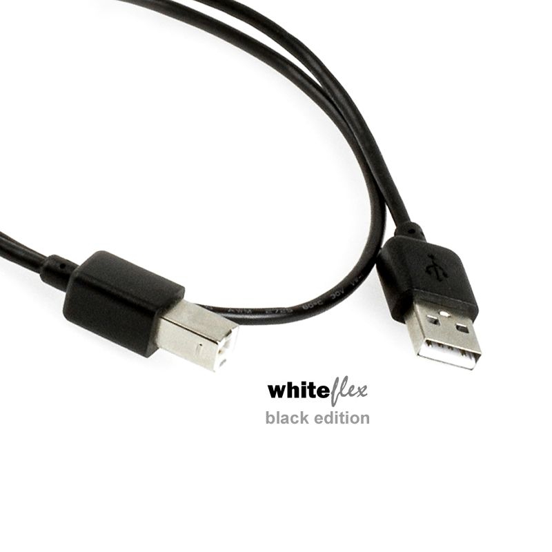 Câble USB WHITEFLEX Black Edition, 2m, noir, pour Mac/PC, cordon très flexible, diamètre seulement 3mm, Hi-Speed USB 2.0, connectique: USB à 4 broches type A (mâle) - USB à 4 broches type B (mâle)
