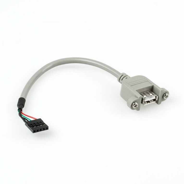 Câble USB 2.0 à montage sur panneau, 20cm, USB A femelle (2 vis) vers connecteur carte mère (5 broches, quadrillage 2.54mm), compatible avec USB 2.0 et USB 1.1