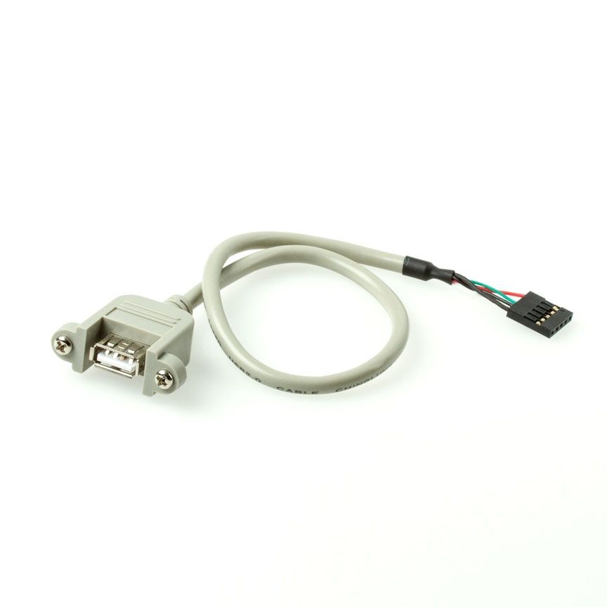 Câble USB 2.0 à montage sur panneau, 30cm, USB A femelle (2 vis) vers connecteur carte mère (5 broches, quadrillage 2.54mm), compatible avec USB 2.0 et USB 1.1