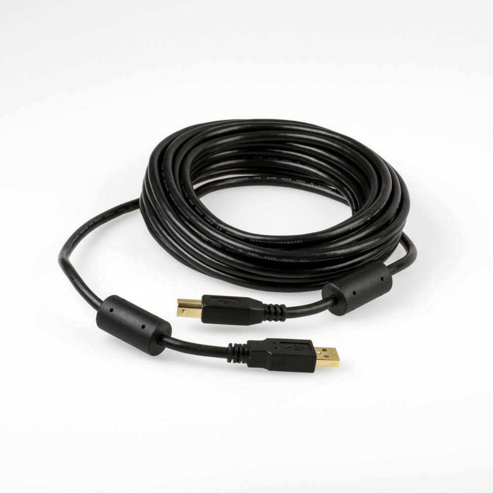 Câble USB 2.0 à usage industriel, 7.5m, très haute qualité PREMIUM+, 2 noyaux de ferrite (protection contre les perturbations lors de la transmission des données), fils de cuivre plus épaisses: 26AWG/1P 20AWG/2C, USB A mâle vers USB B mâle (plaqué or), noir