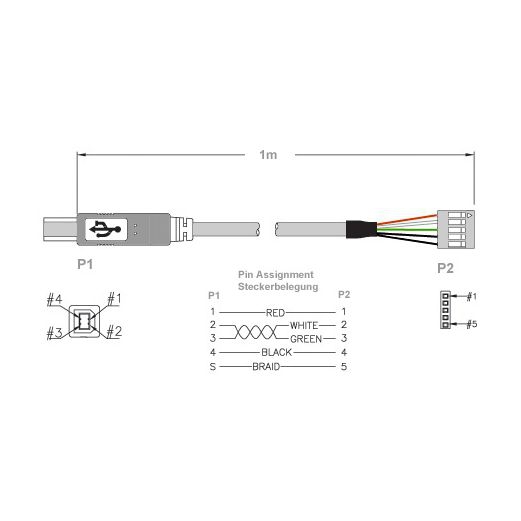 Câble USB 2.0 avec B mâle vers connecteur carte mère 5 broches, 1m