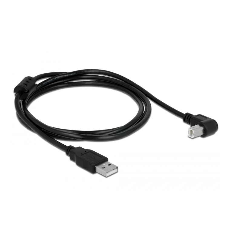 Câble USB 2.0 avec connecteur B coudé (90° VERS LE BAS), avec noyau de ferrite, double blindage, haute qualité 28AWG/1P et 24AWG/2C, couleur: noir, 1.5m