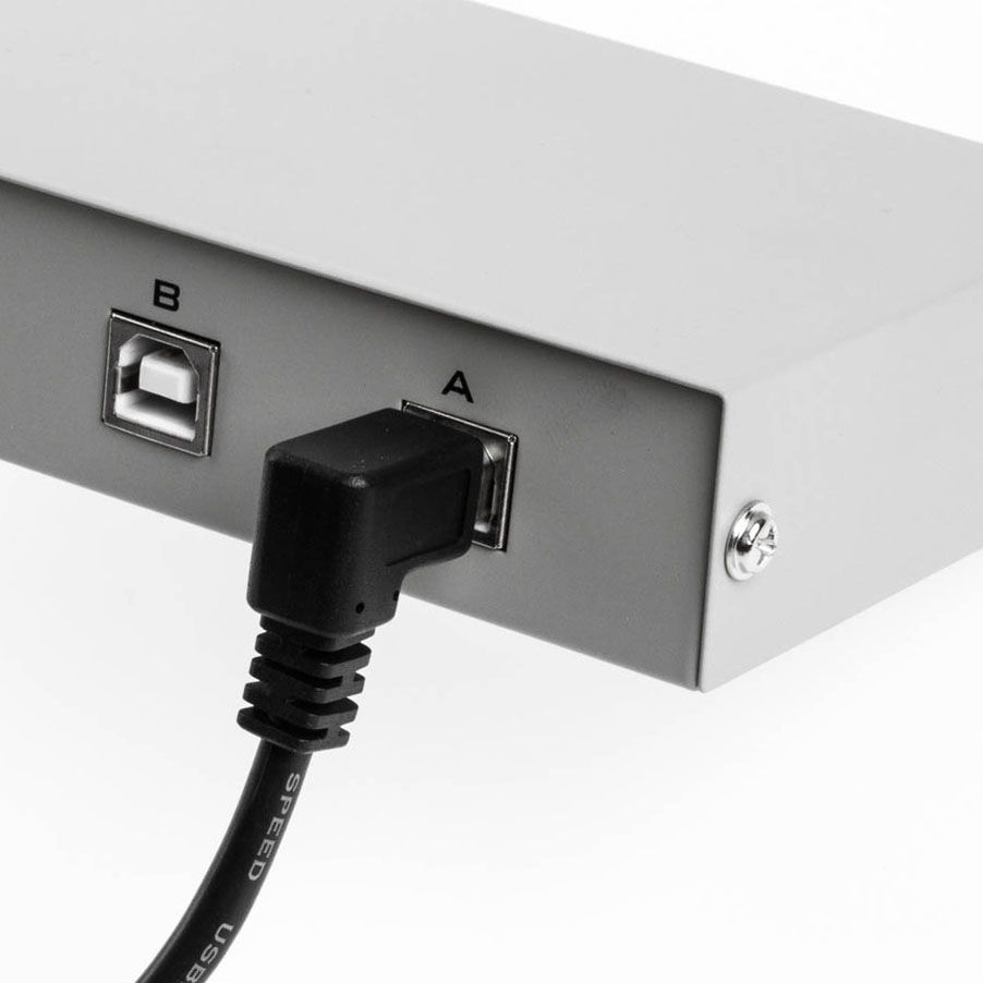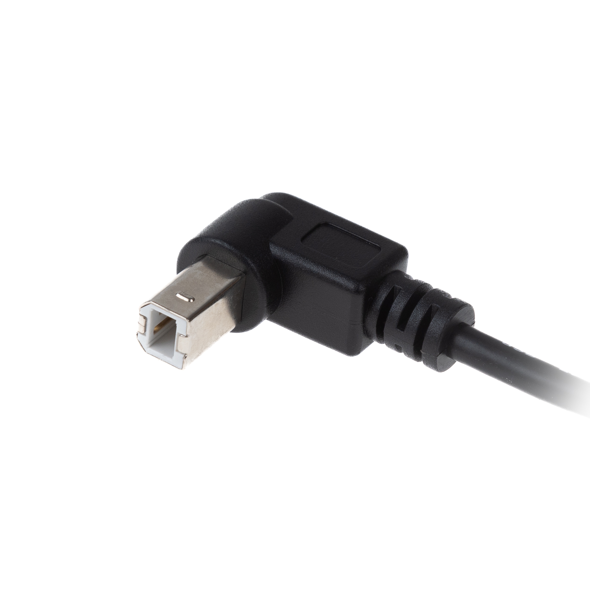 - Câble USB 2.0 A vers B avec connecteur B coudé à 90