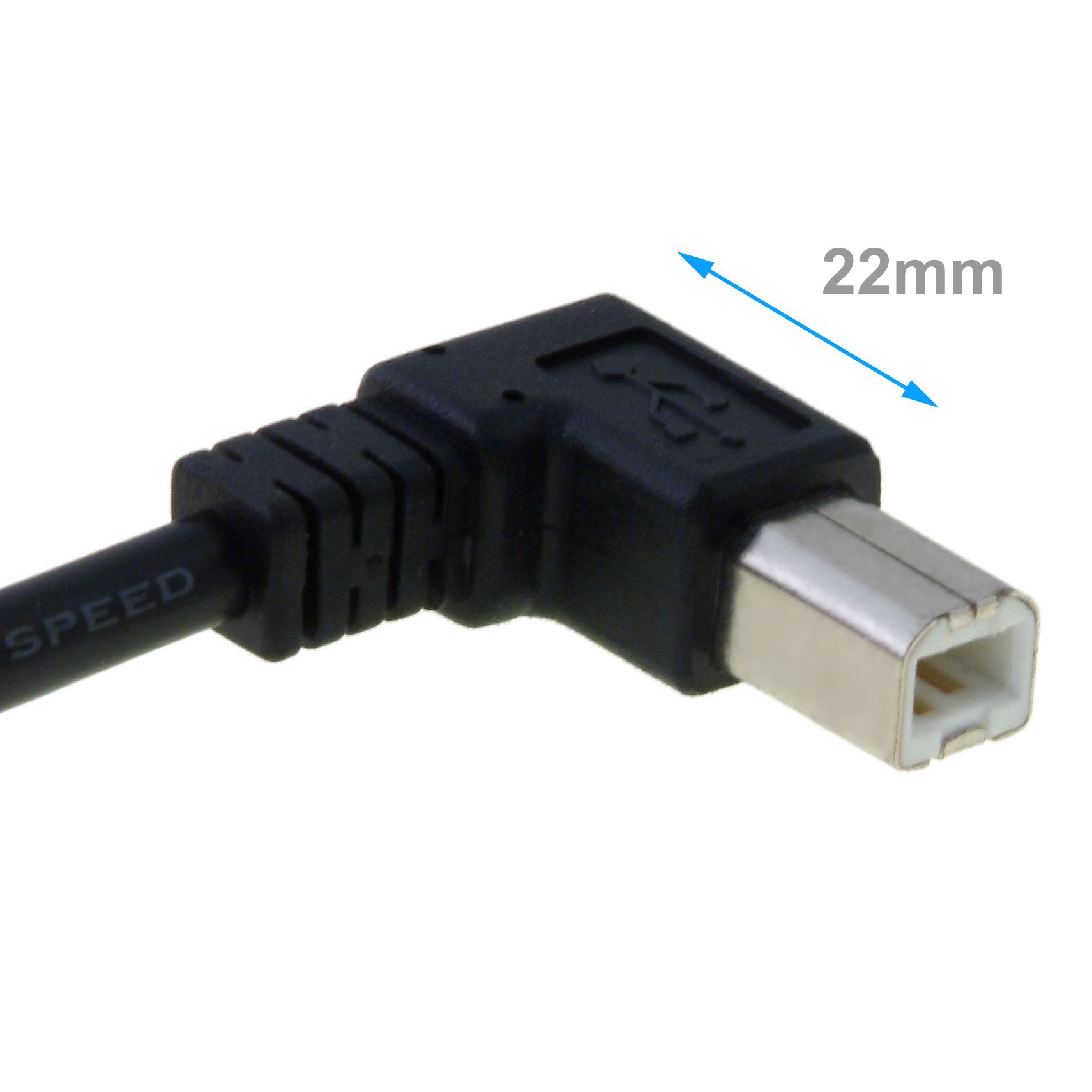 Câble USB avec connecteur B coudé 90° À DROITE, 50cm, connectique: prise USB type A mâle (pas coudée) - prise USB type B mâle (coudée), Hi-Speed USB 2.0 (haute qualité 28AWG1P / 24AWG2C), couleur: noir