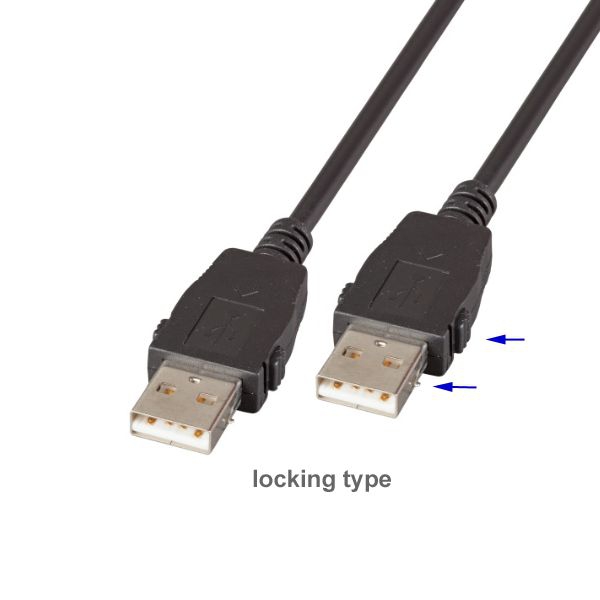 Câble USB 2.0 spécial avec 2x fiche USB A mâle AVEC VERROUILLAGE 1m