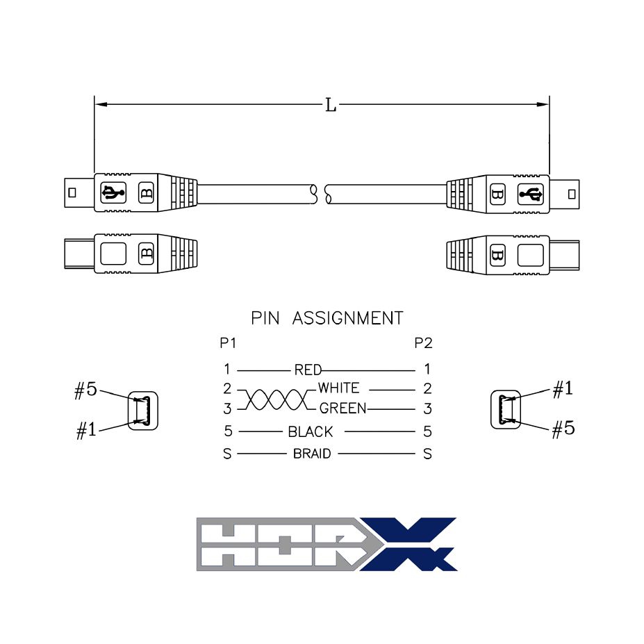 Câble USB Mini B mâle vers USB Mini B mâle, 1m, noir, 4 broches connecter 1-vers-1 (broches n° 1, 2, 3 et 5)