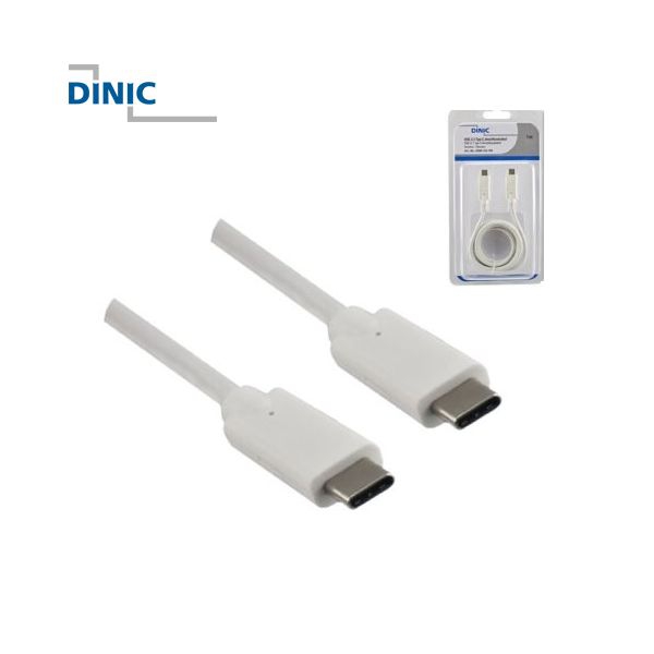 Câble USB 2x Type-C™ male, 10 Gbps, Power Delivery 5A, BLANC, 1m, de DINIC