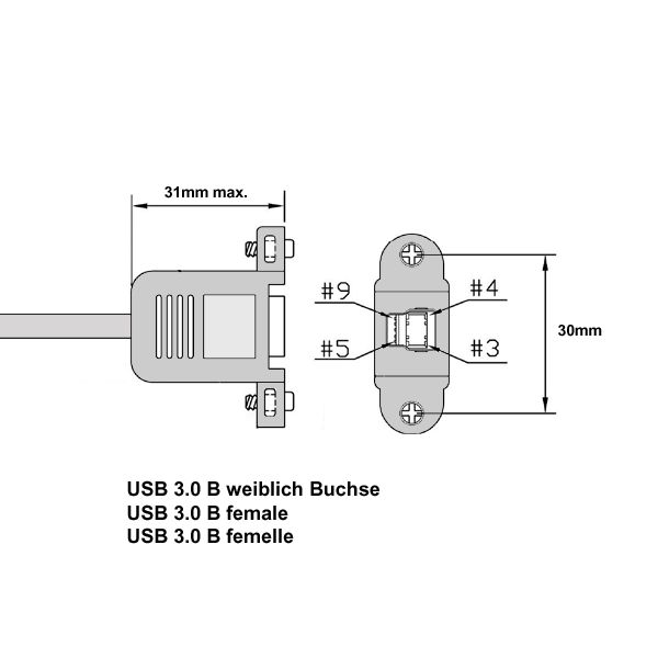 Câble USB 3.0 à visser RALLONGE DE MONTAGE B femelle vers Micro B mâle 20cm