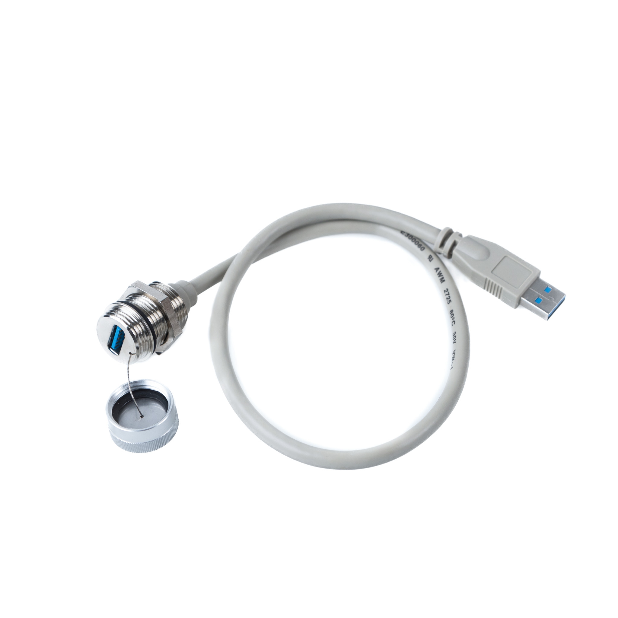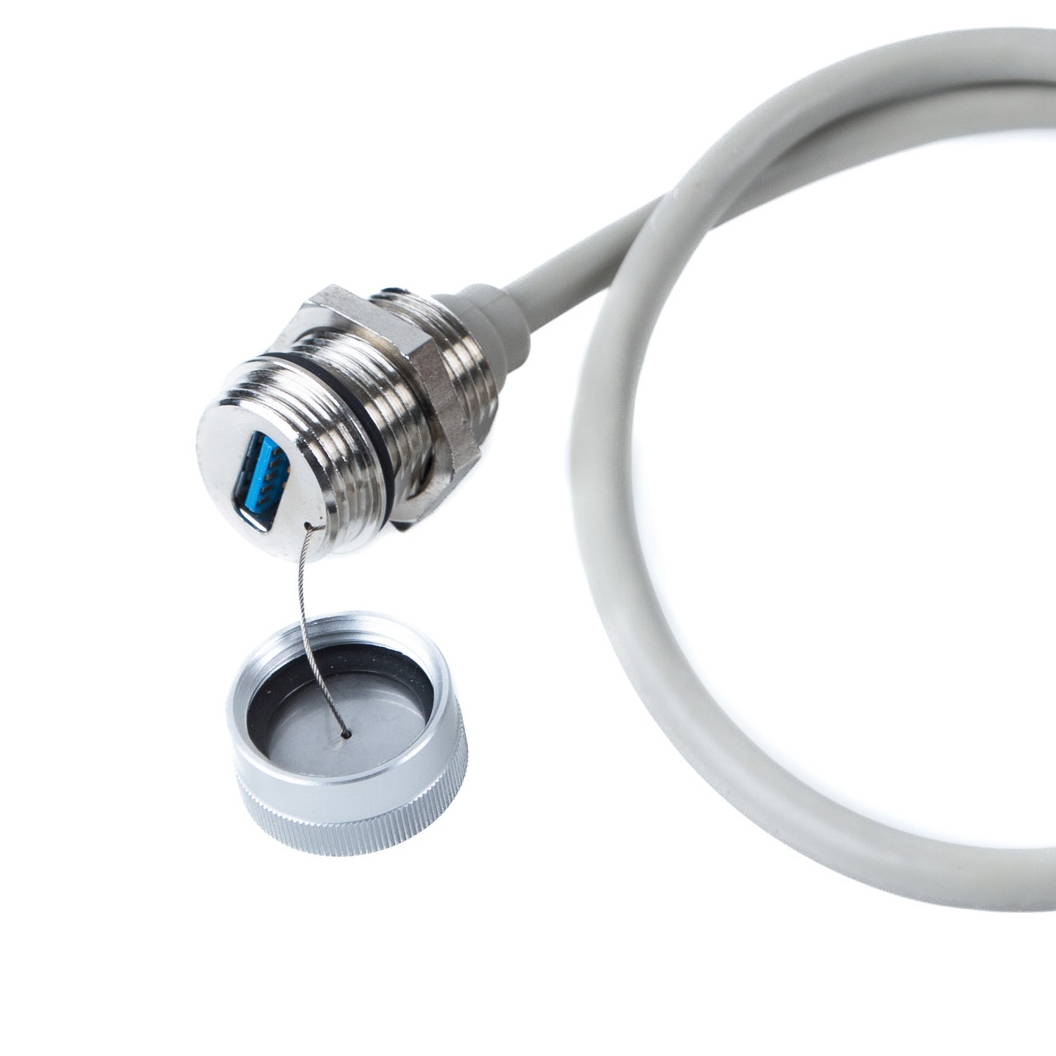 Câble USB 3.0 montage sur panneau A femelle (capuchon IP67, corde interne) vers A mâle, 50cm