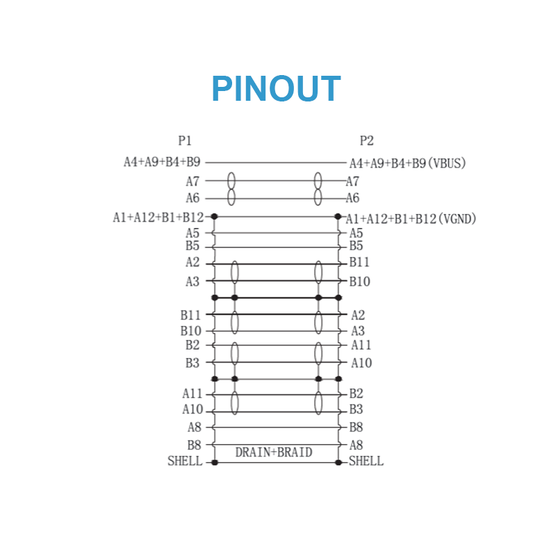 - Données AWG32, Alimentation AWG22 (cuivre, CU)
