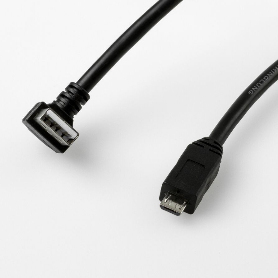 Câble Micro USB avec prise A coudée, 2m, de très haute qualité: double blindage, AWG28/1P AWB24/2C, USB 2.0, USB A 90° mâle vers Micro B droite mâle, noir, p. ex. câble de transfert de données pour téléphones mobile