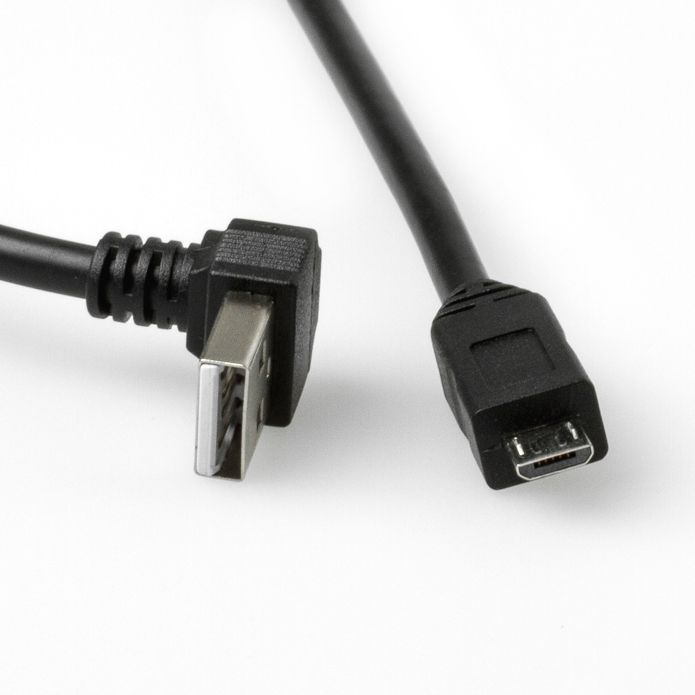 Câble Micro USB avec prise A coudée, 50cm, de très haute qualité: double blindage, AWG28/1P AWB24/2C, USB 2.0, USB A 90° mâle vers Micro B droite mâle, noir, p. ex. câble de transfert de données pour téléphones mobile