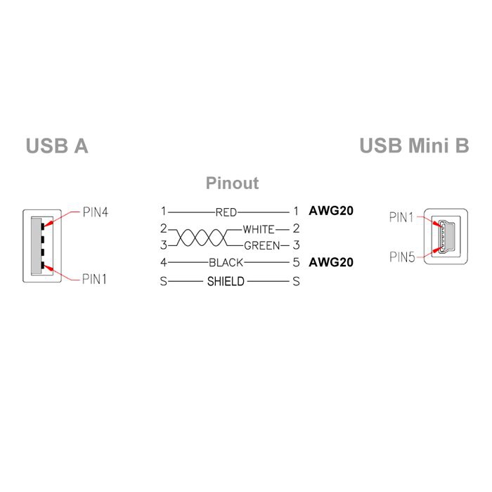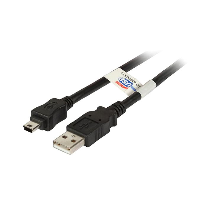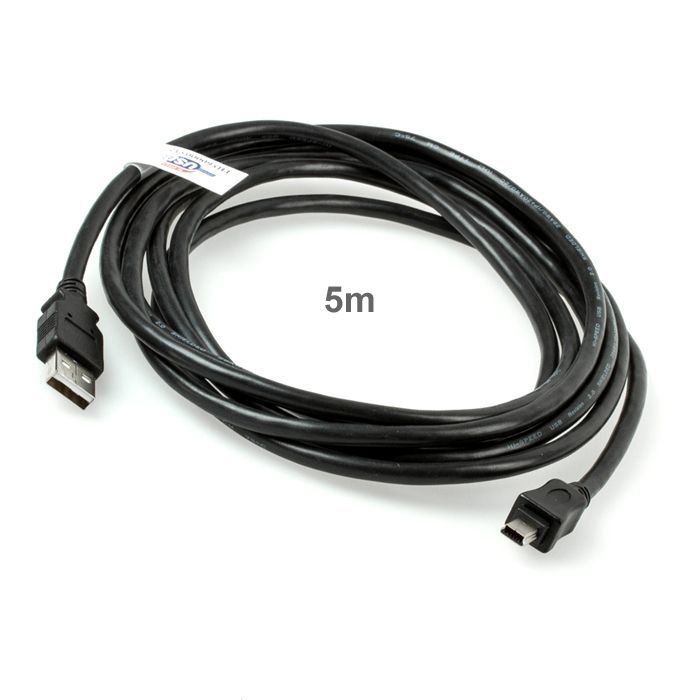 Câble USB Mini B 5m, qualité PREMIUM+, USB 2.0 high speed, certification TID 60000532 (www.usb.org), USB A mâle vers Mini B (5 broches) mâle, 28AWG/1P 20AWG/2C (5v épais), double blindage (tresse 80% de couverture), diamètre 5mm, noir