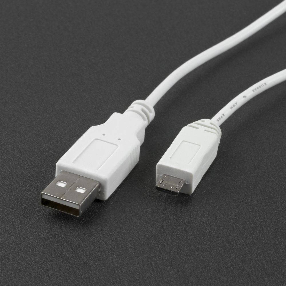 Câble USB Micro B de WHITEFLEX, 1m, pour Mac/PC, cordon très flexible, diamètre seulement 2.9mm (AWG30/28), Hi-Speed USB 2.0, connectique: prise USB A mâle vers USB Micro B à 5 broches mâle, blanc