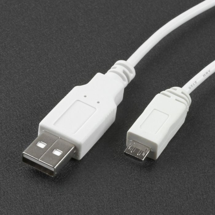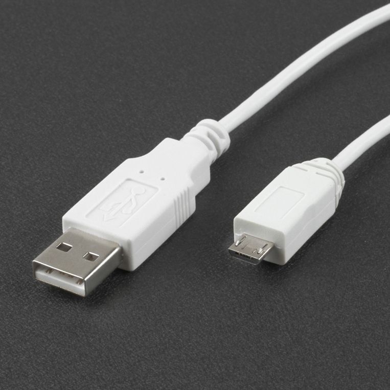 Câble USB Micro B de WHITEFLEX, 2m, pour Mac/PC, cordon très flexible, diamètre seulement 2.9mm (AWG30/28), Hi-Speed USB 2.0, connectique: prise USB A mâle vers USB Micro B à 5 broches mâle, blanc