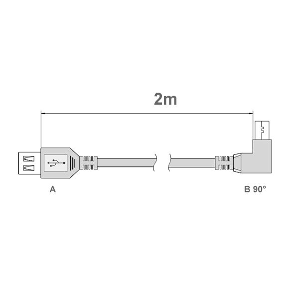 Câble USB AB - B coudé 90 VERS LE BAS 2m ARGENT