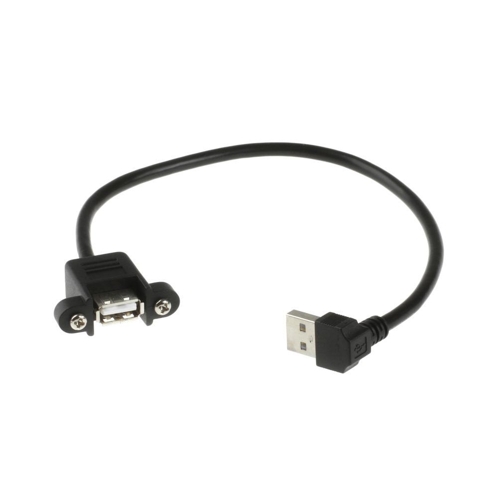 Câble USB à visser / rallonge de montage, 30cm, prise USB A femelle (2 vis) vers prise USB A mâle A coudée 90° VERS LE BAS, Hi-Speed USB 2.0 (haute qualité 28AWG1P / 24AWG2C), noir