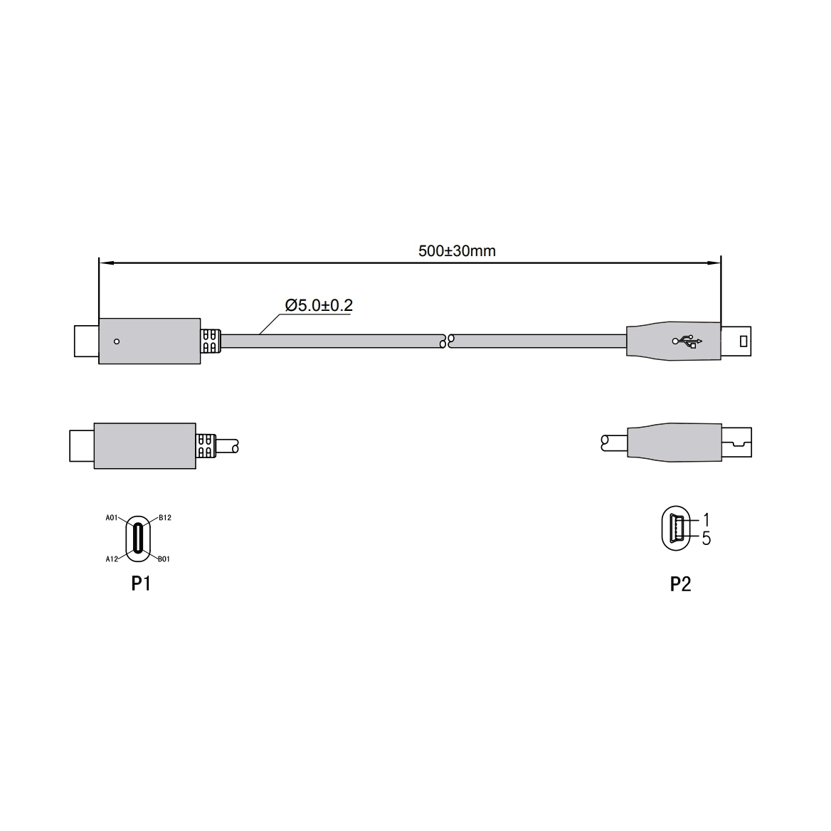 Câble USB Type-C™ mâle vers Mini B mâle 50cm