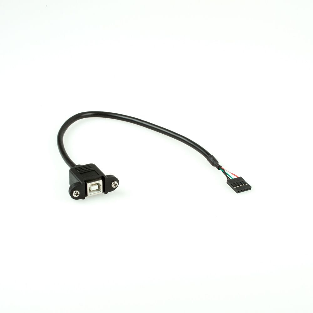 Câble USB à visser / rallonge de montage, 30cm, prise USB B femelle (2 vis) vers connecteur carte mère (version 5 broches, quadrillage 2.54mm), Hi-Speed USB 2.0 (haute qualité 28AWG1P / 24AWG2C), noir