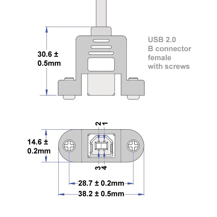 Câble USB à visser RALLONGE DE MONTAGE BB 50cm distance vis 28.7mm