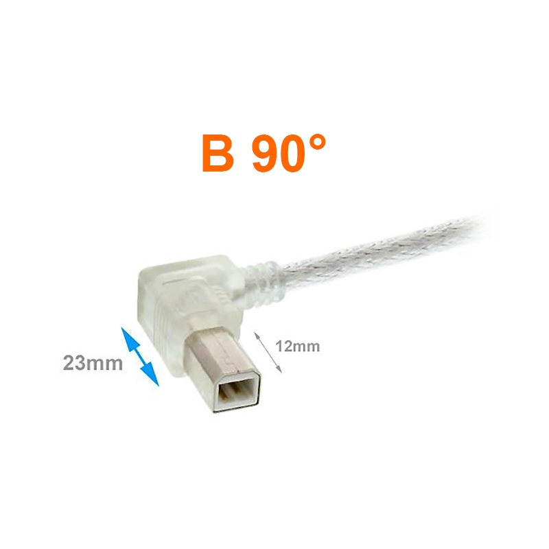 Câble USB avec fiche B coudée 90° À GAUCHE 50cm