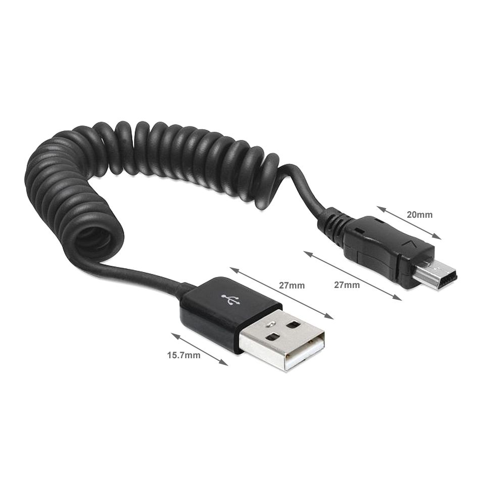 Câble USB de connection spiralé USB-A vers MINI-B 20cm-60cm