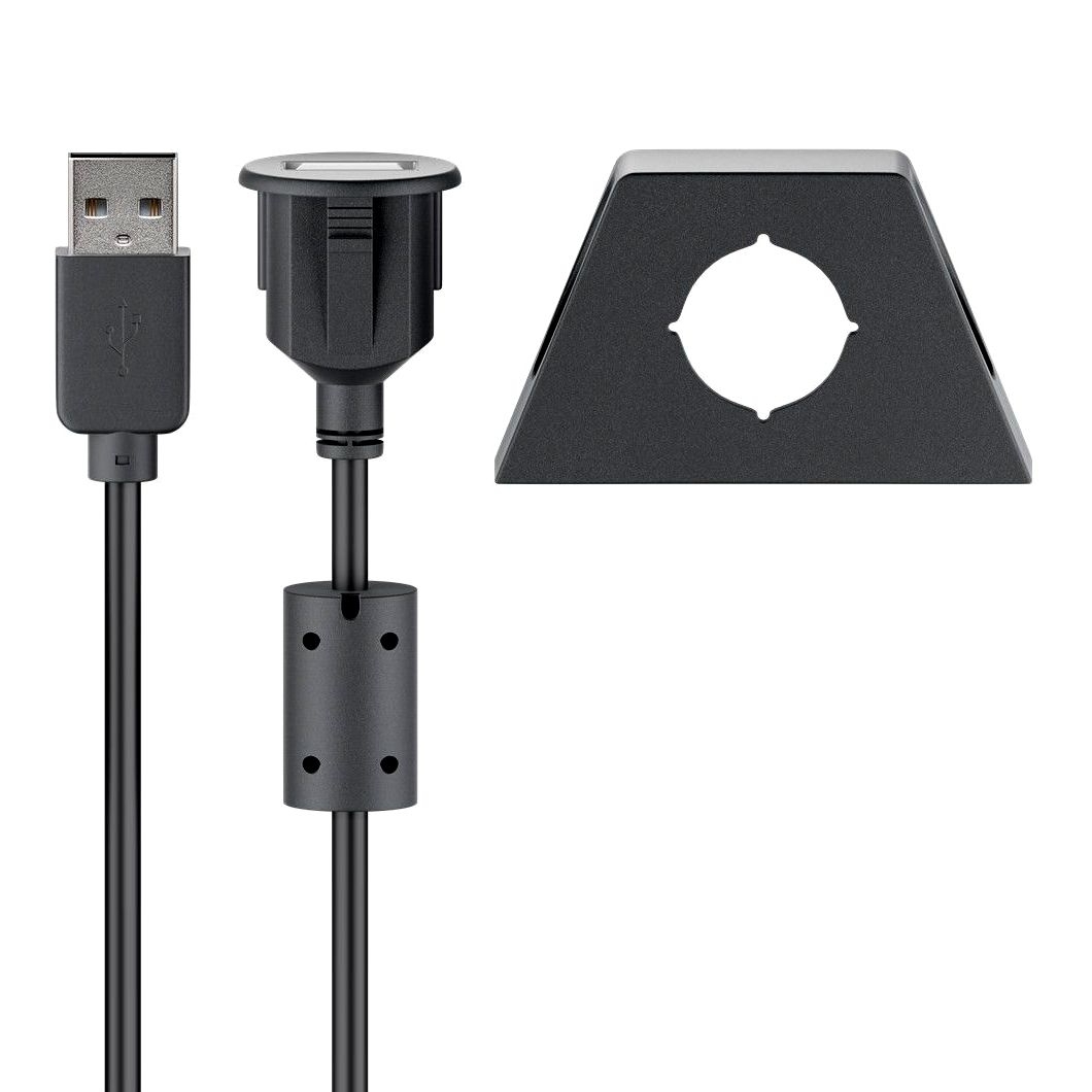 Câble USB de montage (pour trou rond avec diamètre de 2cm), longueur 120cm, prise USB A femelle (montage) - prise USB A mâle, compatible USB 2.0